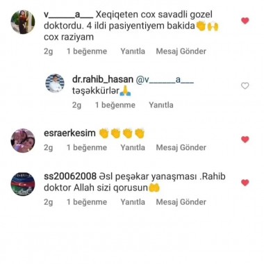 Doctor Rahib Hasan works in Acıbadem Altunzade Hospital and Marmara Hospital in Turkey. For patients who cannot go to Turkey, Ege Hospital regularly admits patients to Azerbaijan every month. In addition, Hospitals are invited to accept patients from Uzbekistan, Kazakhstan, Russia, Montenegro and many countries.