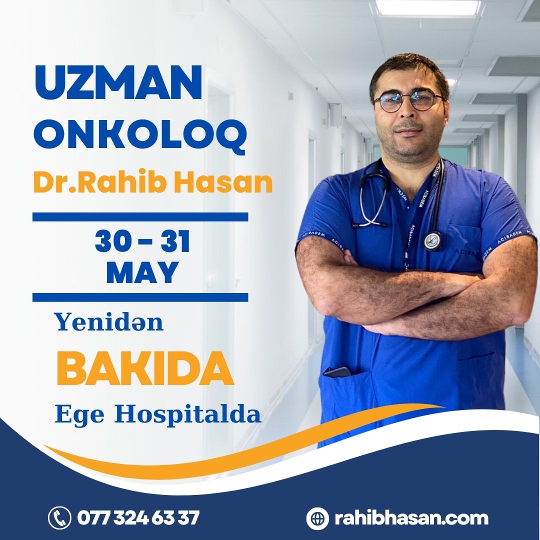Uzman Onkolog Rahib Hasan, 30-31 May Bakü'de "Ege Hospitalda" hasta kabul edecek.