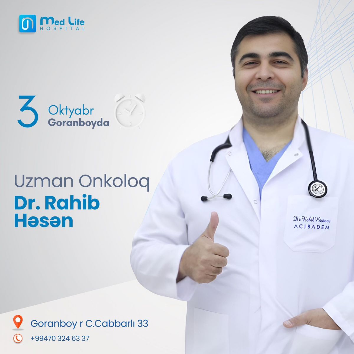 Uzman Onkolog Rahib Hasan, 3 Oktyabr Goranboy'da "Medi Life Hospitalda" hasta kabul edecek.